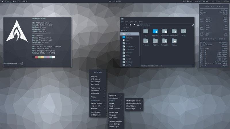 ArcoLinux 是一个功能齐全的发行版,附带有 Xfce 桌面、Openbox 和 i3 窗口管理器。