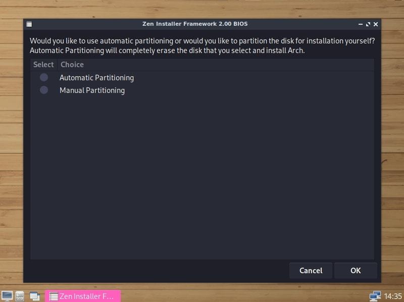 Zen Installer 为安装 Arch Linux 提供了一个完整的图形(点击式)环境。它支持安装多个桌面环境 、AUR 以及 Arch Linux 的所有功能和灵活性,并且易于图形化安装。
