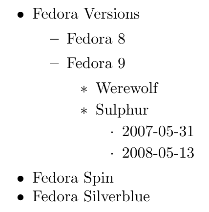 \item Fedora Versions