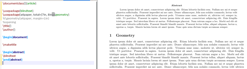 当你第一次编写 LaTeX 文档时,你可能已经注意到默认边距比你想象的要大一些。页边距与指定的纸张类型有关,例如 A4、letter 和 documentclass(article、book、report) 等等。要修改页边距,有几个选项,最简单的选项之一是使用 fullpage 包。