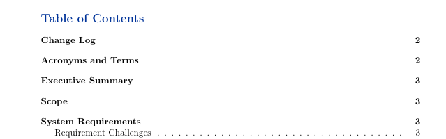 默认情况下,目录的标题为 “contents”。有时,你想将标题更改为 “Table of Content”,更改目录和章节第一节之间的垂直间距,或者只更改文本的颜色。
