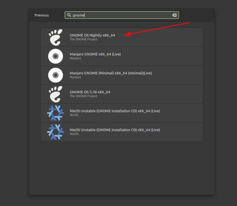 你所需要做的就是搜索 “GNOME”,然后你应该会找到可用的每夜构建版。这可以确保你正在尝试最新和最优秀的 GNOME 开发版本。