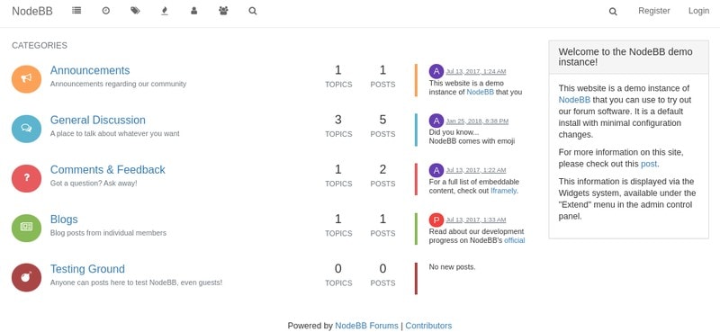 NodeBB 是一个基于 Node.js 的开源论坛软件。它的目标是简单、优雅和快速。首先,它面向有托管计划的组织和企业。但是,你也可以选择自己托管它。