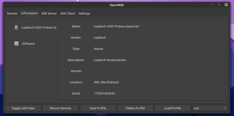 尽管我没有很多支持 RGB 的设备/组件,但我可以成功地调整我的罗技 G502 鼠标。