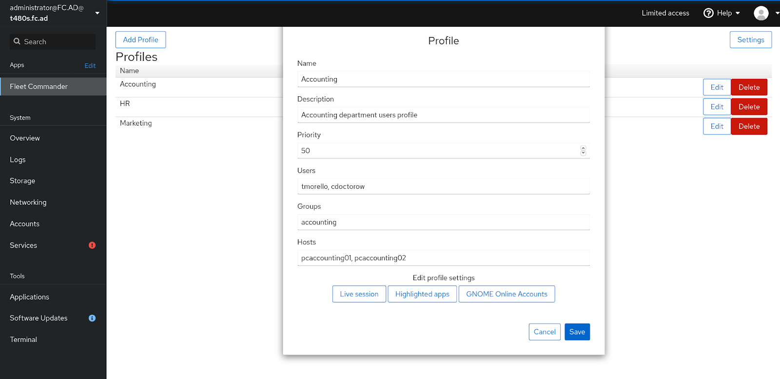 Fleet Commander 是一个管理工具,允许你为网络中的所有 Fedora Linux 机器设置桌面配置文件。