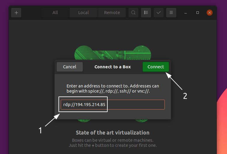 如果由于某种原因你不想使用 Boxes,你也可以使用一个叫做 Remmina 的客户端。