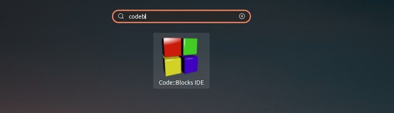 在系统菜单中搜索 “Code Blocks”。这是在 Ubuntu 默认的 GNOME 版本中的样子: