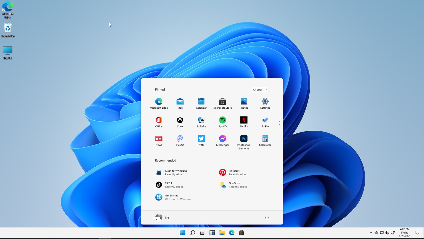 进入了桌面,此处其实是个动态的过程,因为截屏所以看不出效果。这个 Windows 界面重新设计过 UI了,个人觉得更好看了。