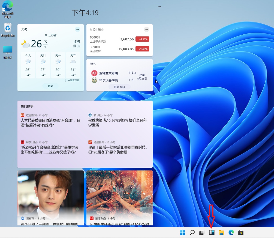 这是由 Microsoft Edge 和 AI 提供的全新 Widgets功能,包含日历、天气、待办事项、照片等功能。