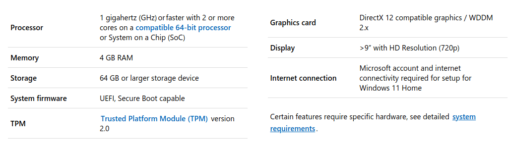 首先,有意思的是,Windows 11 添加了一个最低系统需求,这表面上看起来还行: