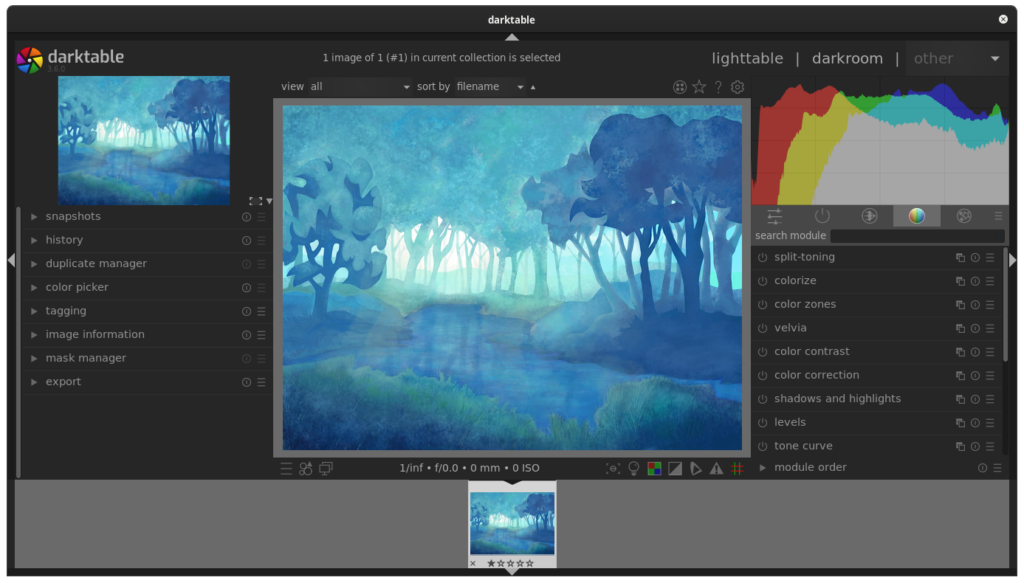 darktable 是摄影师或那些想提高照片质量的人的完美选择。darktable 更侧重于图像编辑,特别是对 RAW 图像的非破坏性后期制作。因此,它提供专业的色彩管理,支持自动检测显示配置文件。此外,你还可以用 darktable 过滤和排序多张图片。所以你可以通过标签、评级、颜色标签等来搜索你的收藏。它可以导入各种图像格式,如 JPEG、CR2、NEF、HDR、PFM、RAF 等。
