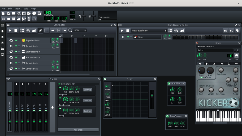 LMMS(即 Linux 多媒体工作室 Linux MultiMedia Studio )是一个全面的音乐创作应用。你可以从头使用 LMMS 用你的电脑开始制作你的音乐。你可以根据自己的创意创造旋律和节拍,并通过选择声音乐器和各种效果使其更加完美。有几个与乐器和效果有关的内置功能,如 16 个内置合成器、嵌入式 ZynAddSubFx、支持插入式 VST 效果插件、捆绑图形和参数均衡器、内置分析器等等。LMMS 还支持 MIDI 键盘和其他音频外围设备。