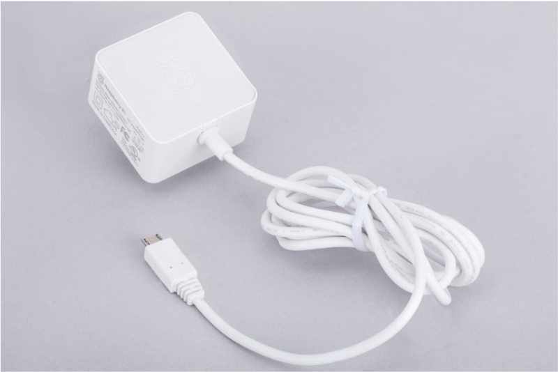 该电源配备了一个 micro USB 接口,而不是 USB-C。尽管这不是为新的 Zero 2 W 准备的,而是为树莓派 3B 或 3B+ 准备的。