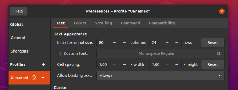 使用 GUI 更改 Ubuntu 的终端的字体和大小