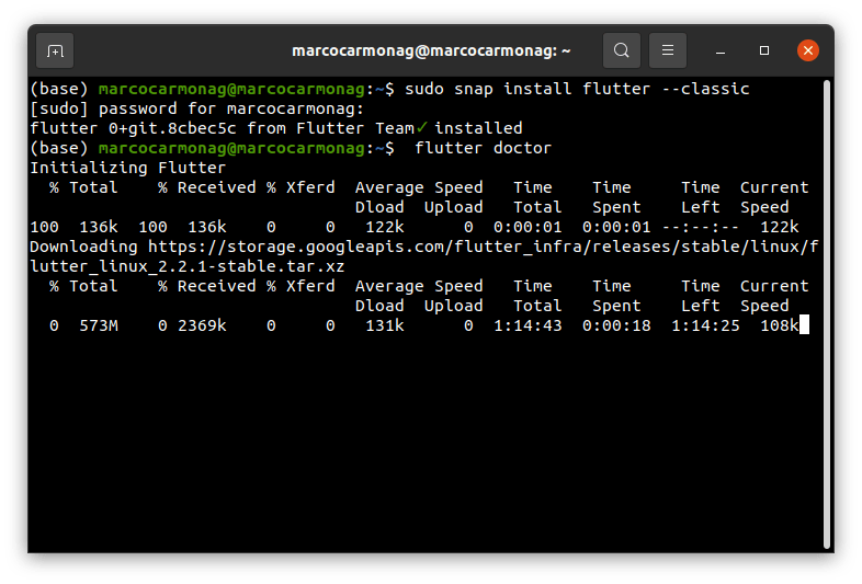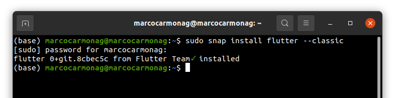 打开终端 并在终端中使用以下命令来安装 Flutter: