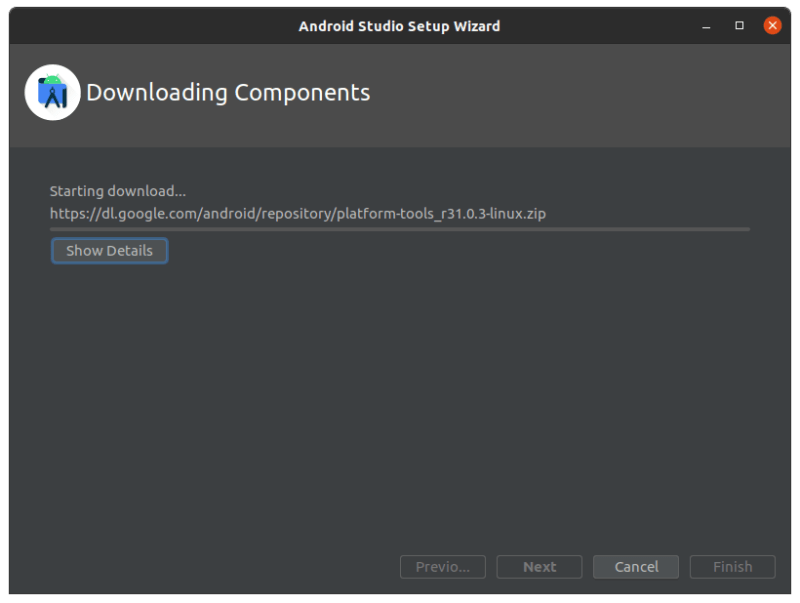 安装完毕后,从我们的操作系统菜单中打开 Android Studio。