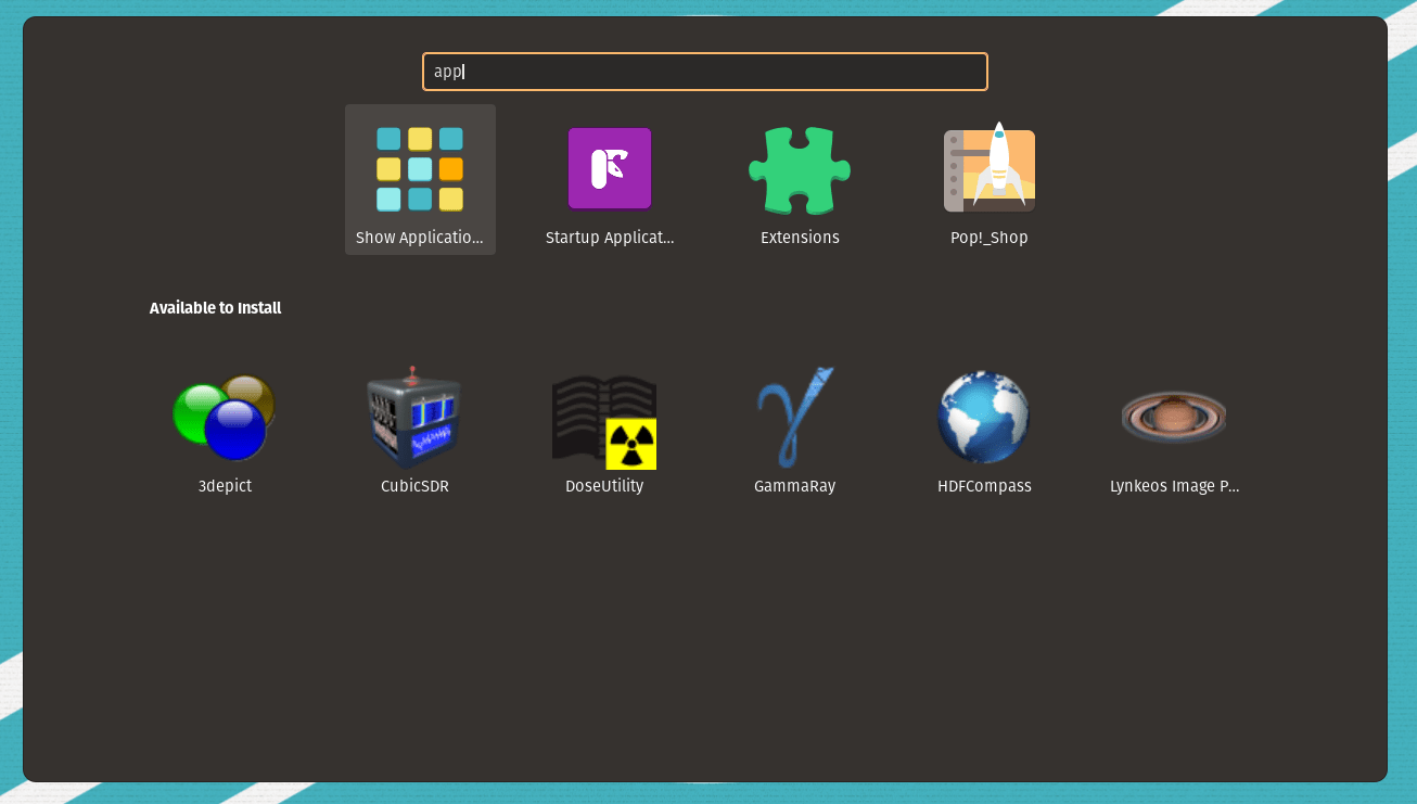 它还可以让你快速搜索应用程序(或根据你的搜索查询过滤它们)。不仅仅限于已安装的应用程序,它还会显示可以使用 Pop!_Shop 安装的应用程序。
