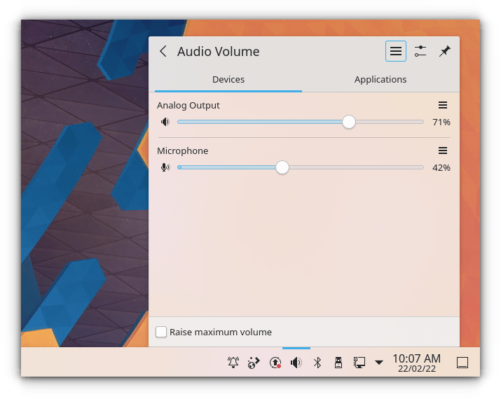 请注意,与 KDE 相比,UI 可能没有那么多功能,也没那么丰富。例如,系统托盘中的部件提供了比 GNOME 上的小程序更多的选项。