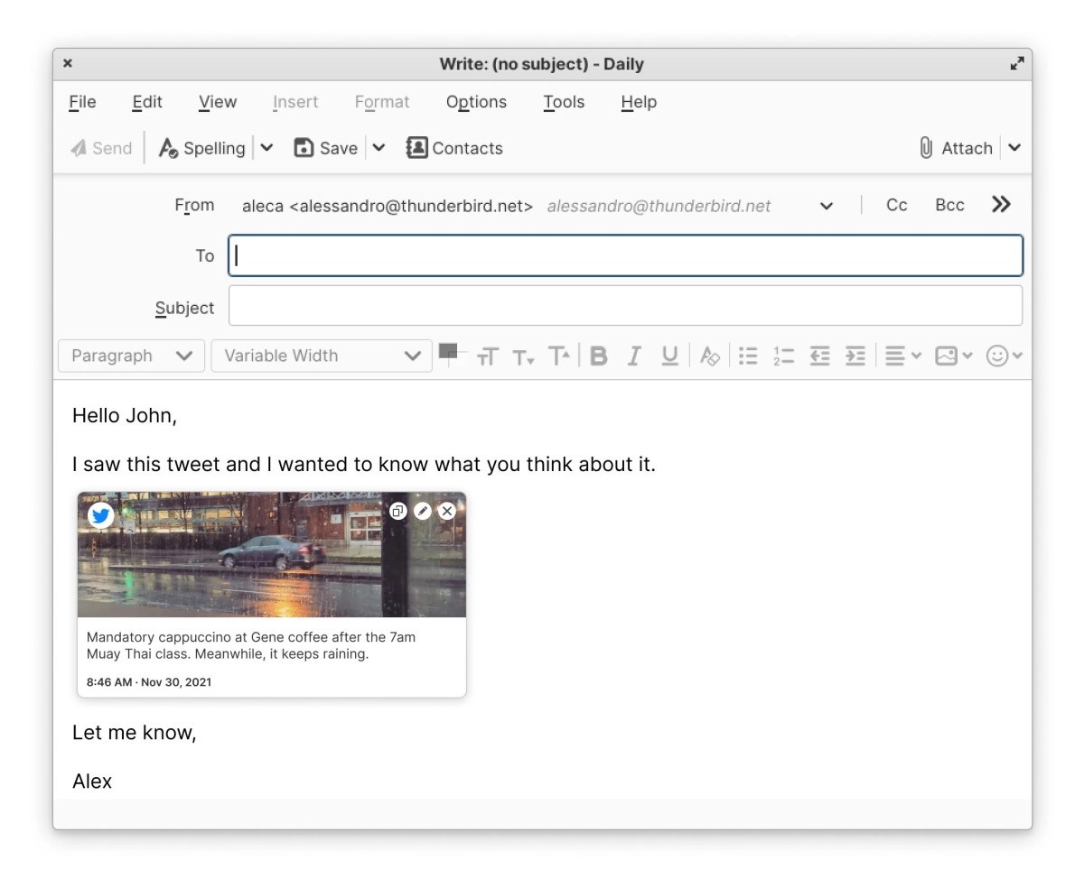 在一条 推特讨论 中,Thunderbird 分享了所有关于此次更新的信息。我在这里挑选其中的关键亮点介绍一下。