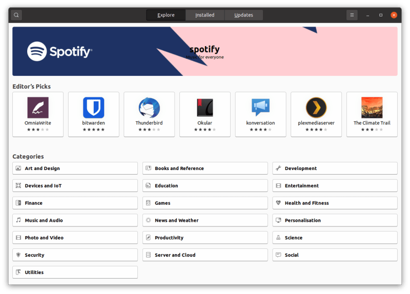 此外,在 Ubuntu 上安装软件包也非常容易。你可以通过 Ubuntu 官方仓库安装软件包,也可以使用 PPA,或者是软件中心(包括 Snap 应用)。