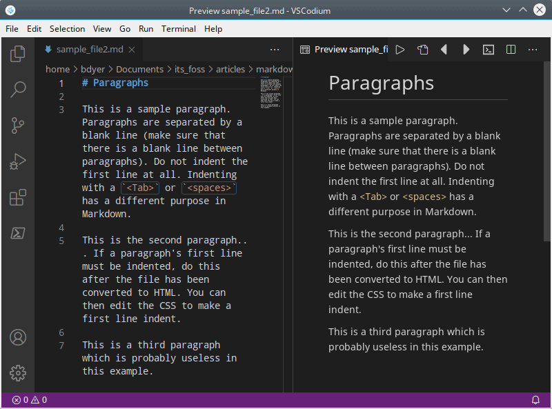 请记住,对于段落,必须用空行来分隔它们,这要通过按两次回车键来实现。Markdown 对此很严格。