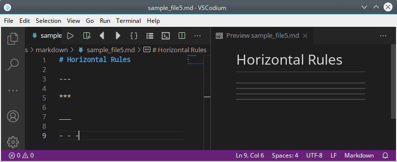 用三个或更多的破折号 - ,下划线 _ ,或者星号 * 来做水平线,像这样: