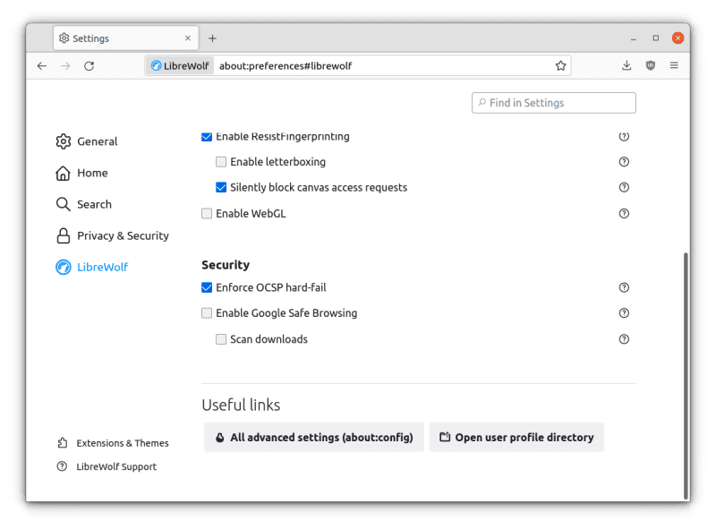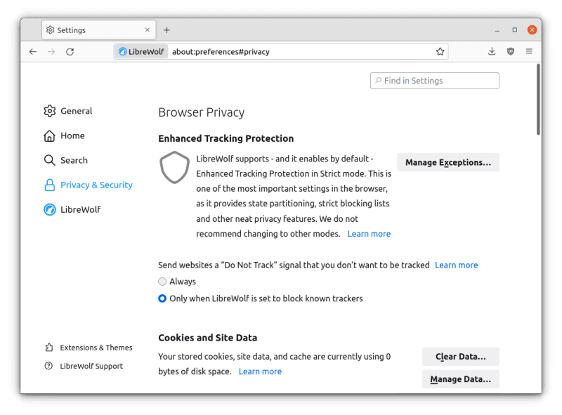 但是,如果你不信任任何 Mozilla 服务并希望在你的浏览器上切断与它们的任何连接,那么 LibreWolf 就是你的朋友。