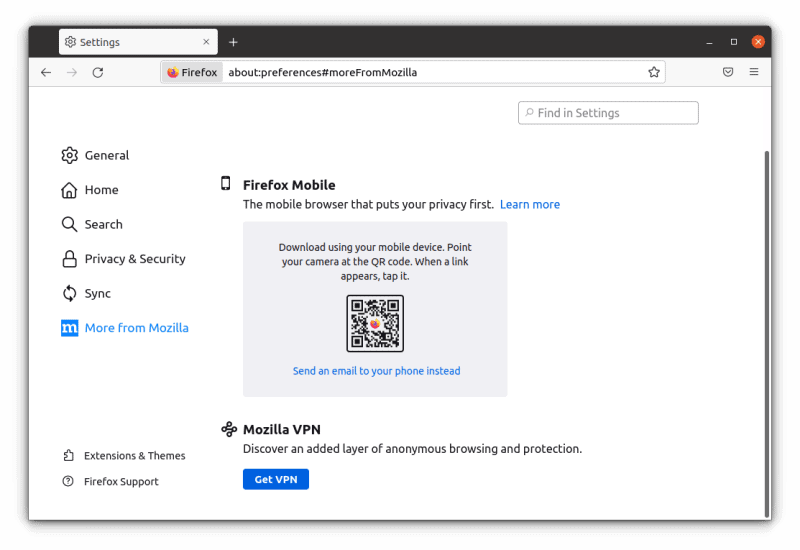 如果你想使用 Mozilla 帐户来同步你的历史记录/书签和浏览器数据,Firefox 是最好的选择。如果你需要,还有 Firefox VPN。