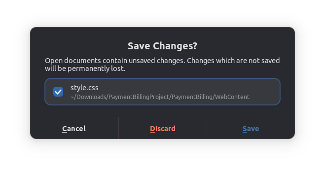 在你修改文件后点击关闭窗口时,编辑器会提醒你选择保存修改还是放弃修改。