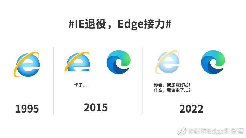 微软宣布 IE 将于 6 月 16 日正式退役,Edge 浏览器的官方微博送上告别微博,“终于,被黑了这么多年,IE 要正式跟大家说再见啦。IE 27 年的旅程,从今以后,这条路由 Edge 替 IE 继续走下去。”IE 浏览器是微软在 1995 年 8 月伴随 Windows 95 推出的。在推出三年后,IE 成为全球市场份额第一的浏览器,在 2003 占据了全球市场高达 95% 的份额。