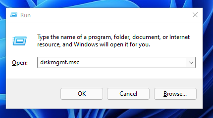 因此,通过按下 Windows + R 组合键来打开磁盘管理器实用程序。