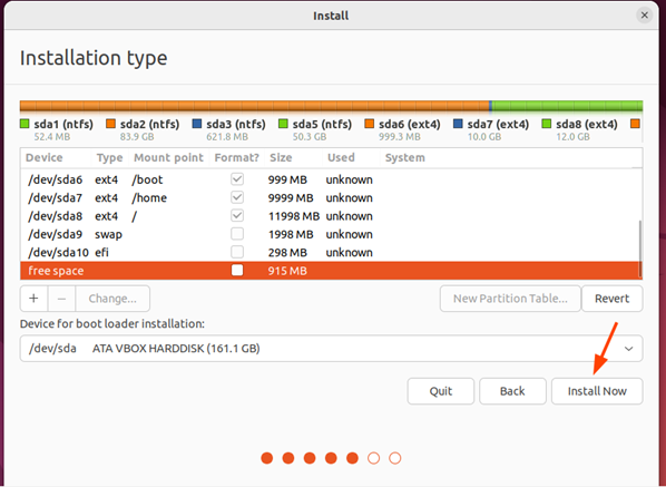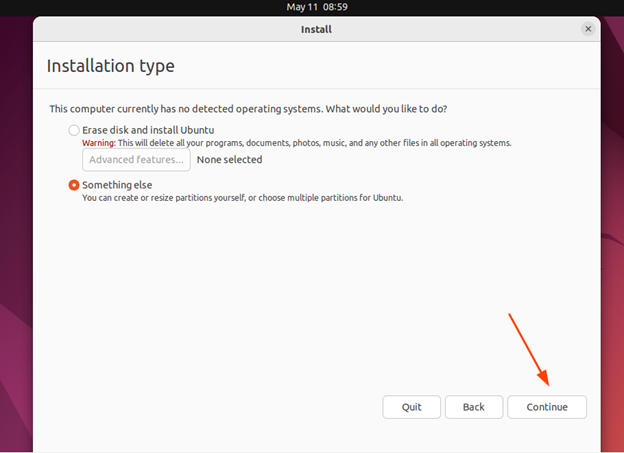 因此,选择 其它选项 Something else ,单击 继续 Continue 按钮。