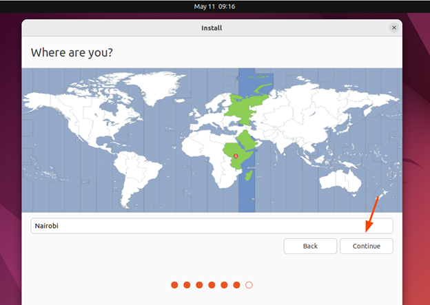接下来,安装程序向导将自动侦测出你的位置,只需要单击 继续 Continue 按钮。