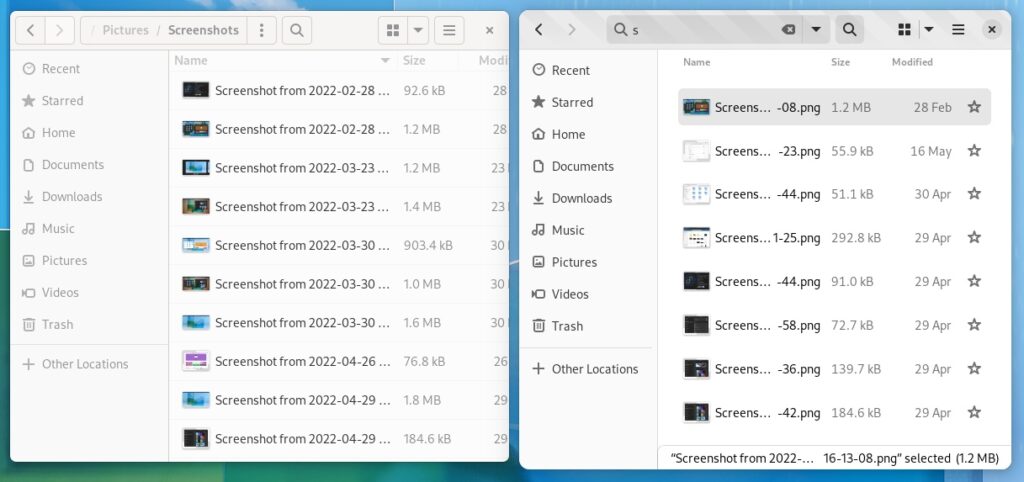 当你用当前的 Nautilus 文件管理器搜索一个文件时,列的处理方式不是很好。你会失去某些细节信息,如文件大小。