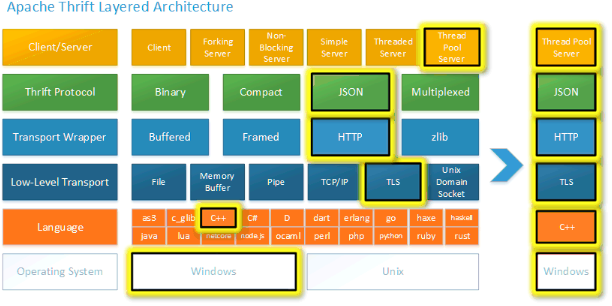 • 对 Thrift 功能(协议、传输)执行额外的集成