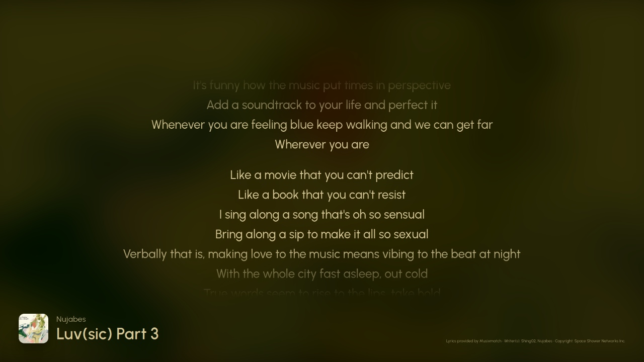默认情况下,Sunamu 不会从专辑封面中获取颜色,而是显示每首歌曲的歌词。和许多其他人一样,我喜欢不看歌词。