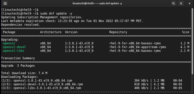 $ sudo dnf update -y