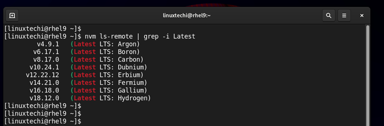 $ nvm ls-remote | grep -i latest