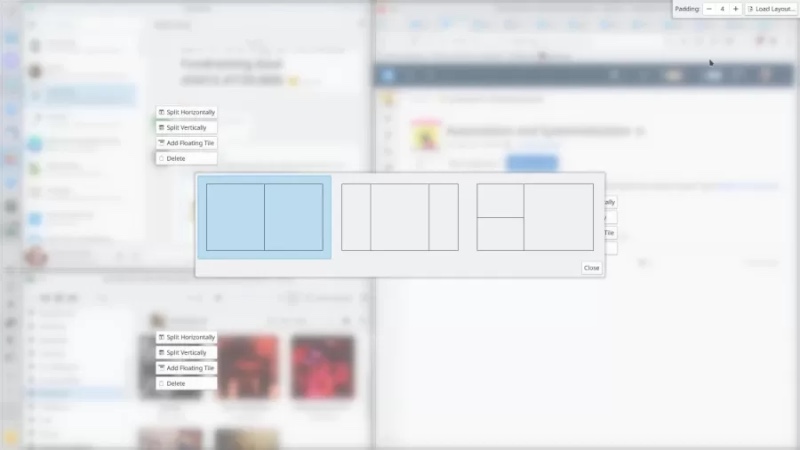 KDE Plasma 桌面的窗口管理器 KWin 增加了一个内置的高级平铺系统,可以用来创建自定义的平铺布局。这包括一个方便的配置界面,用于管理快速平铺行为。这个新的平铺系统有望得到进一步的完善,而最初的实现会在 Plasma 5.27 中找到。