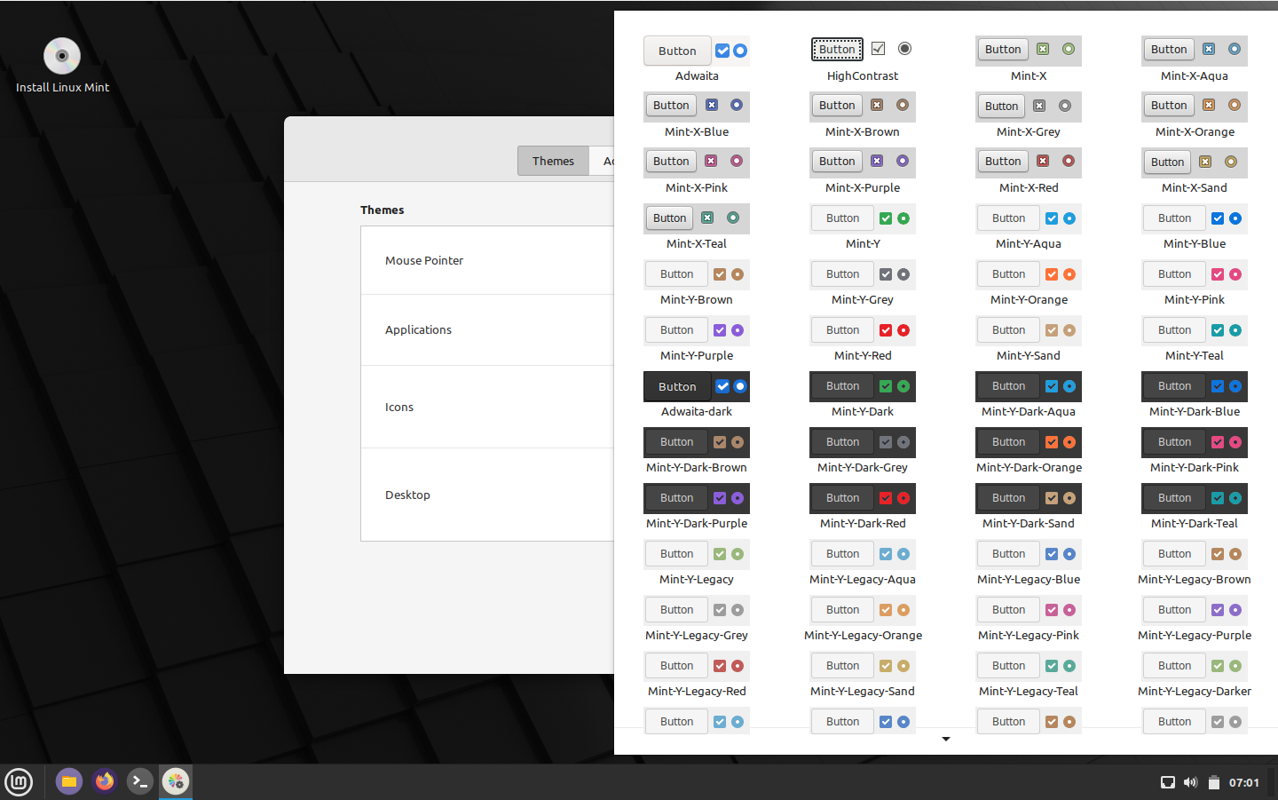 对于那些希望恢复传统外观的人,你可以在主题中选择 “Mint-Y-Legacy”。