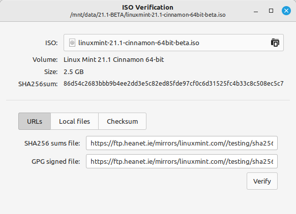 值得注意的是,对于 Linux Mint 和 Ubuntu 的 ISO 镜像,SHA256sum 和 GPG 文件的 URL 是自动填写的。
