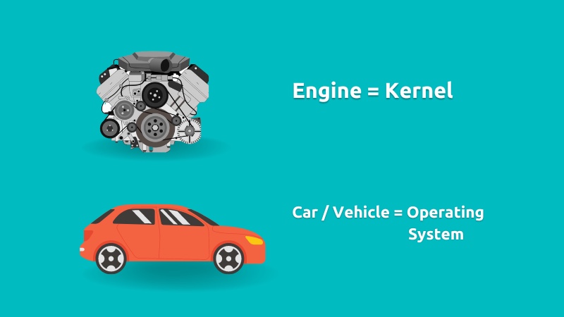 一个更好的类比是将内核想象成汽车的引擎,而操作系统则是汽车。