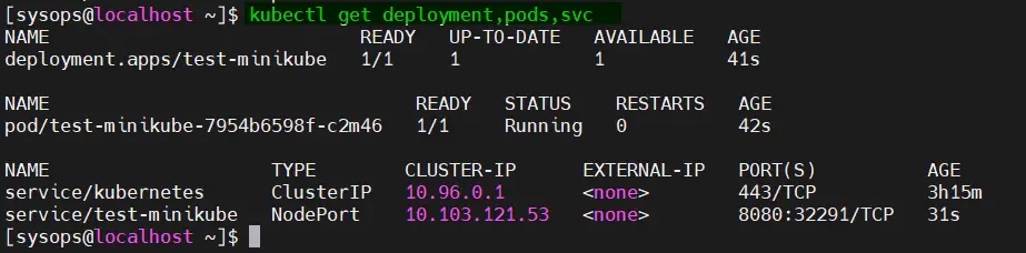 $ kubectl expose deployment test-minikube --type=NodePort --port=8080