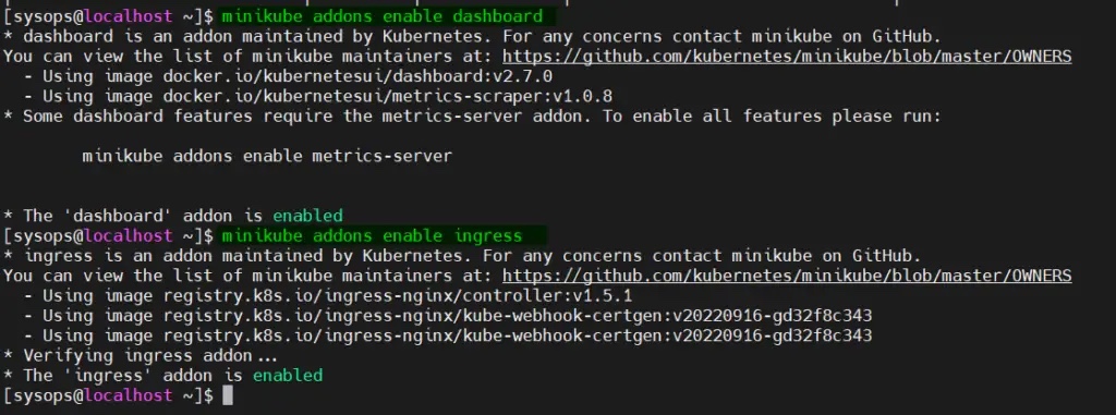 MiniKube 提供插件,可以为我们的集群添加额外的功能。要列出所有可用的插件,运行: