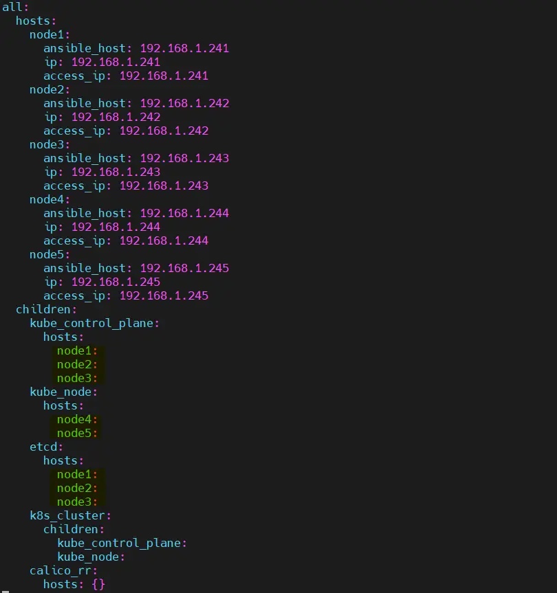 $ vi inventory/mycluster/hosts.yaml