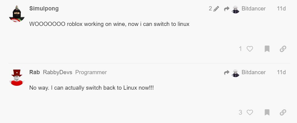 那时,一名 Roblox 员工在论坛中彻底否定了在 Linux 原生支持或找到变通方法运行 Roblox 的可能。