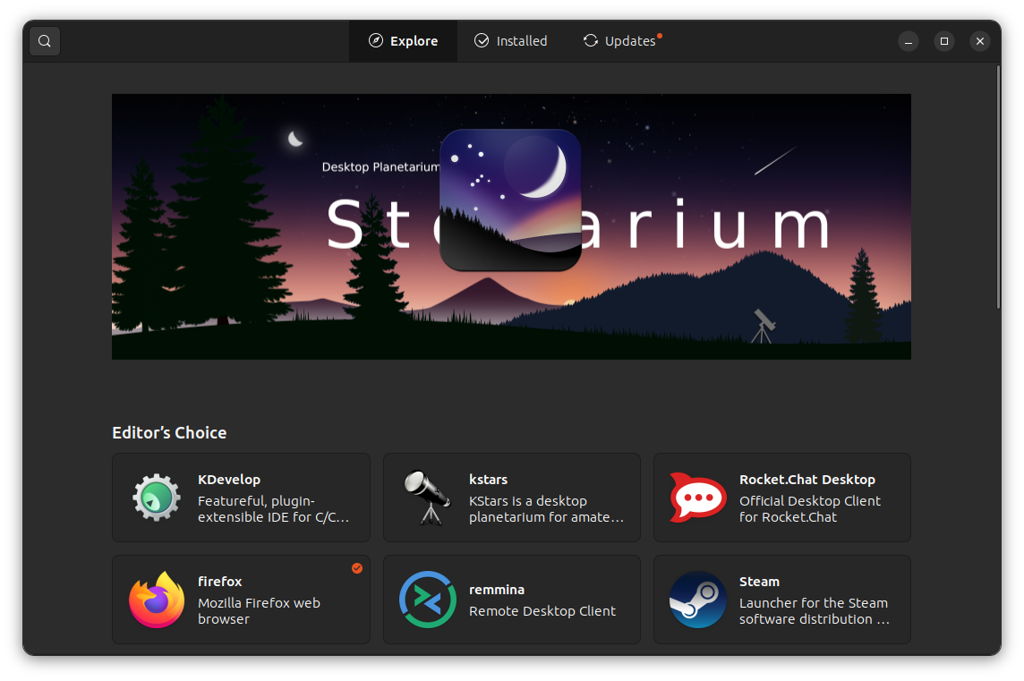 对于 Ubuntu,它使用 软件中心 Software Center 或者 Ubuntu 应用中心 Ubuntu App Center (从 Ubuntu 23.10 开始的新版本),默认集成了 Snap。因此,如果你更倾向于使用 Snap 而不是 Flatpak,Ubuntu 就可以提供以无缝的安装体验。