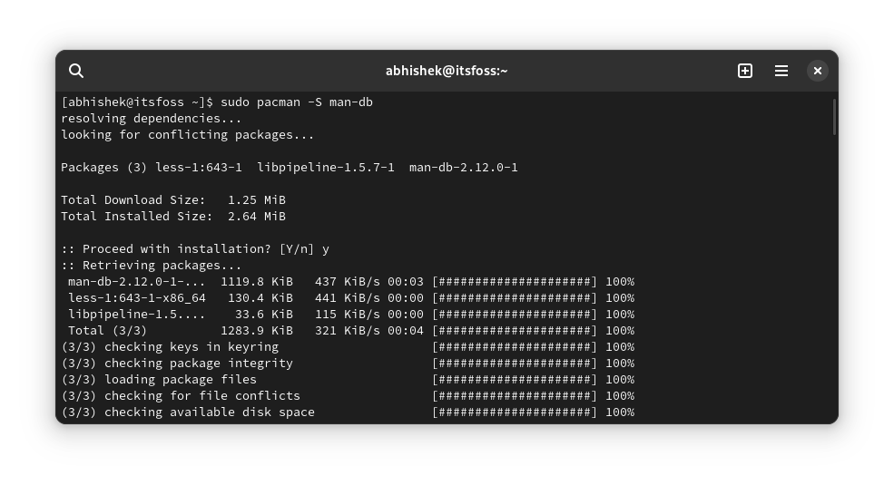 sudo pacman -S man-db