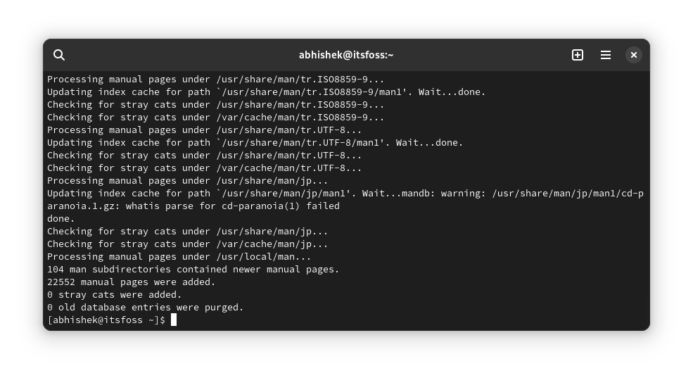 也许我是在 Arch 中遇到这个缺少 man 命令问题的极少数用户之一。也许不是。如果你遇到过这样的“意外错误”,请在评论中告诉我。