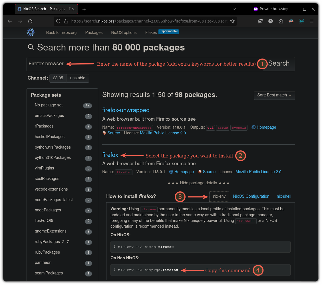 从给定的描述中,你可以找到所需的软件包,然后选择 nix-env 进行永久安装。